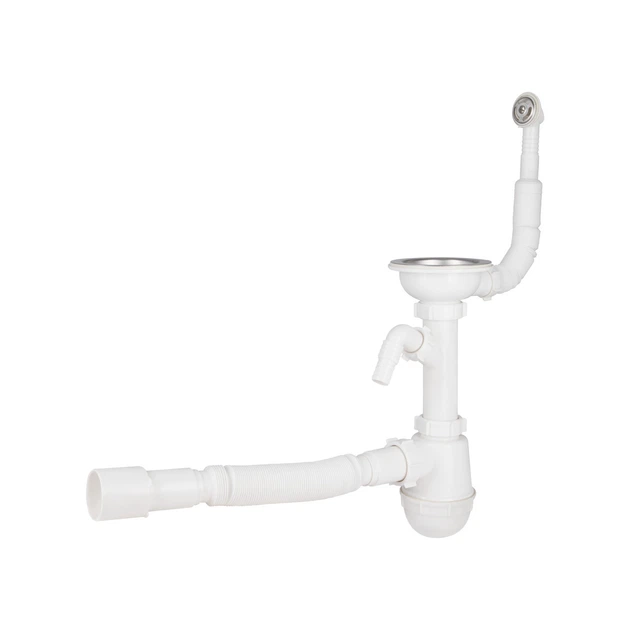 Сифон для кухонної мийки Lidz (WHI) 60 08 E001 01 ECO з круглим переливом (вихід 50 мм)
