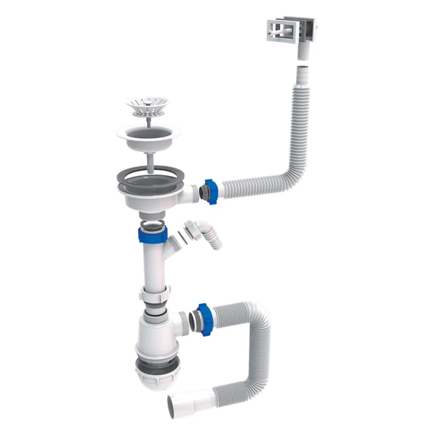 Сифон для мийки 3 1/2"х40 з різьб.випуск.,ПРЯМОТОЧН,г-трубою 40х40/50 та гнучк.кругл.переливом MILLZ