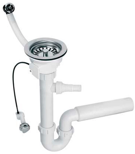 Сифон пластиковий для мийки McALPINE трубний з під'єднанням до пральної машини з автоматичним зливом 113 мм і переливом 1 1/