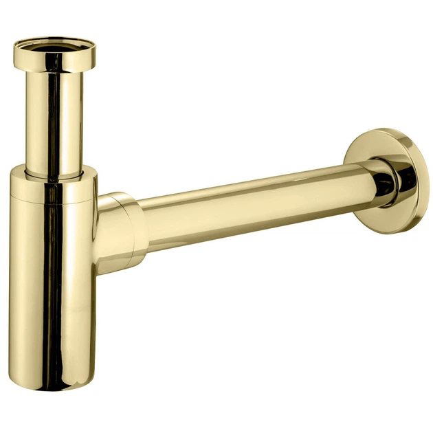 Сифон для умивальнику VBI колбовий латунь впуск 1 1/4" випуск горизонтальний золото VBI-059100GL