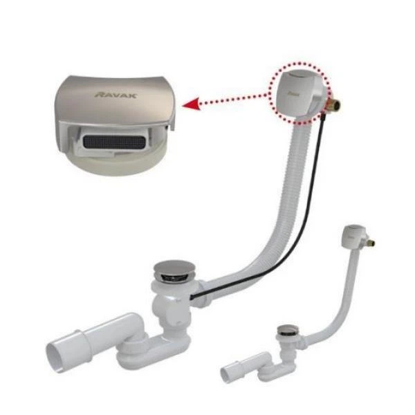 Сифон для ванни RAVAK 800 мм, ХРОМ, керування тросиком (наповнення ванни через перелив) X01504