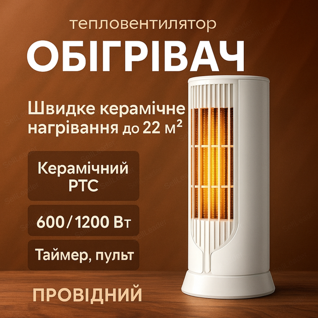 Керамічний обігрівач 1200Вт для дому кімнати офісу настільний тепловентилятор 2 режим таймер і пульт