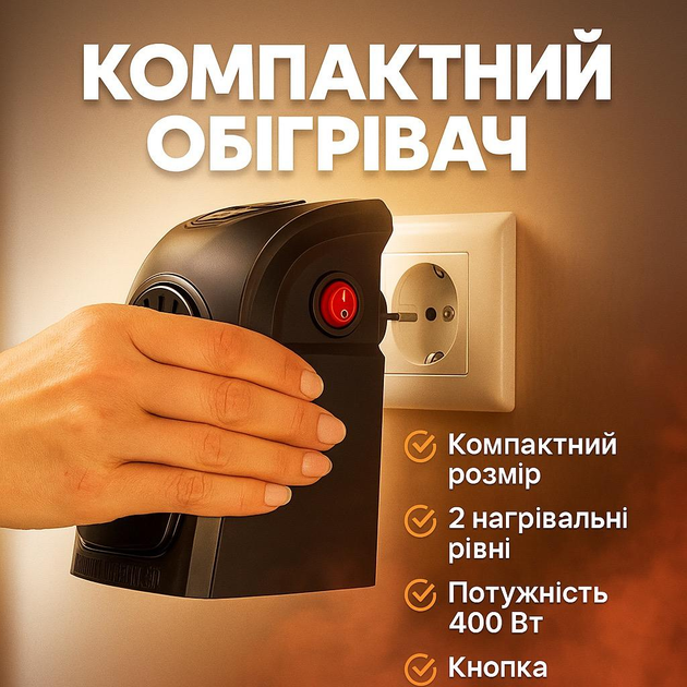Портативний міні обігрівач Handy Heater 370 Вт з термостатом, керамічним елементом, таймером 12 годин, безшумний, настінний