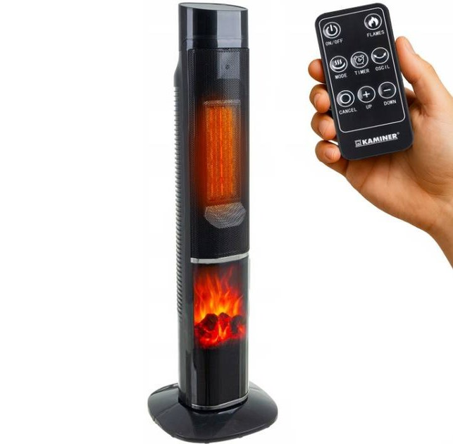 Колонний тепловентилятор Kaminer IGNISSE 26401 2000 Вт Чорний з ефектом каміна і пультом