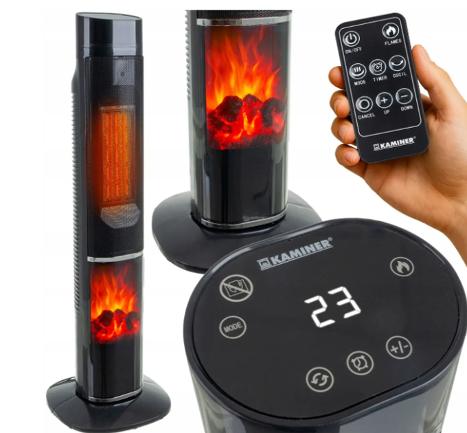 Колонний тепловентилятор Kaminer 26401 2000 Вт, ефект каміна, пульт
