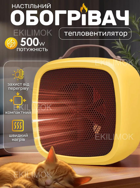Настільний обігрівач тепловентилятор електричний 500Вт компактний економний безпечний для дому офісу кімнати спальні кухні ч