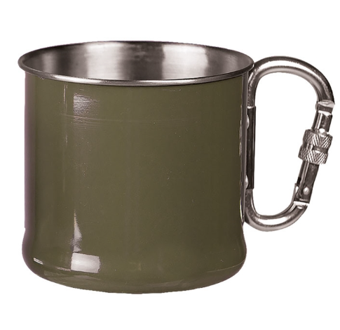 Кружка тактична Mil-Tec із карабіном 500мл Олива KARABINERBECHER 500 S/STEEL OLIV (14608202-500)