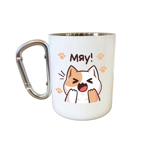 Кружка металева з карабіном Я навчу вас радіти 300 мл Біла
