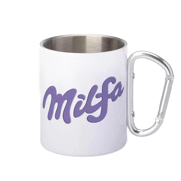 Кружка металева з карабіном Шукаю Мілфу 300 мл Біла
