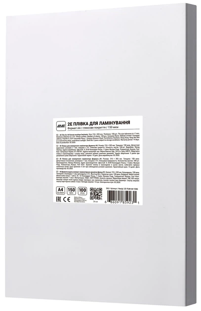 Плівка для ламінування A4 2E, глянсове покриття, 150 мкм, 100шт