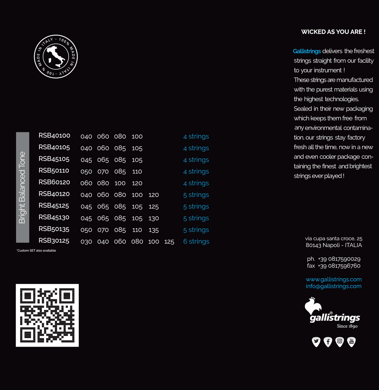 Комплект струн Gallistrings для бас-гітари включає 5 струни з нікелевою обмоткою. Кожна струна має шестигранний сердечник. Струни Gallistrings гарантують тривалий термін служби, зберігаючи своє звучання протягом тривалого часу. Вони стануть відмінним вибором для вимогливих бас-гітаристів, які прагнуть отримати максимальне задоволення від кожної ноти. Кат.