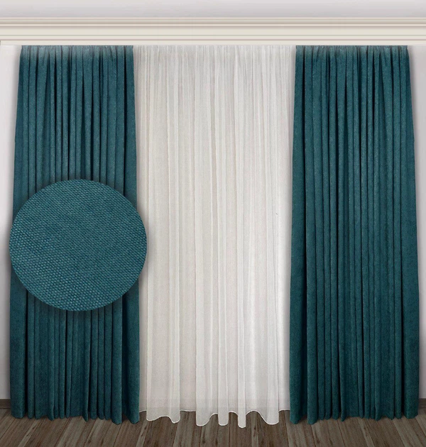Комплект штор EkoShtory мікровелюр 200х285 cм, темно-бірюзових №2511 2шт