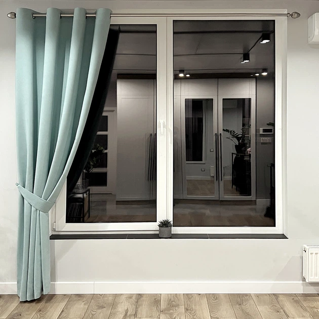 Штора на чорних люверсах 1 шт з підхватом 295х250 см мікровелюр Світло-бірюзовий