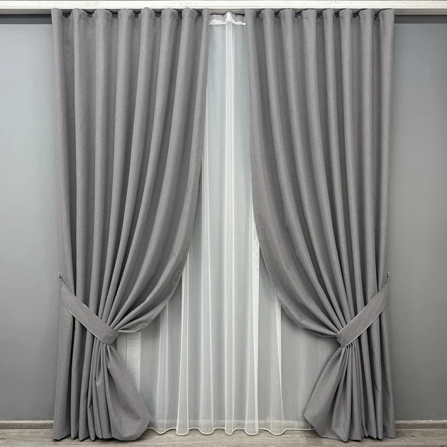 Комплект штор VR-Textil 100 блекаут ASHEN NIGHT 150х270 2шт і Тюль 400х270 1840ш-1153т світло-сірий з білим 71-087/3