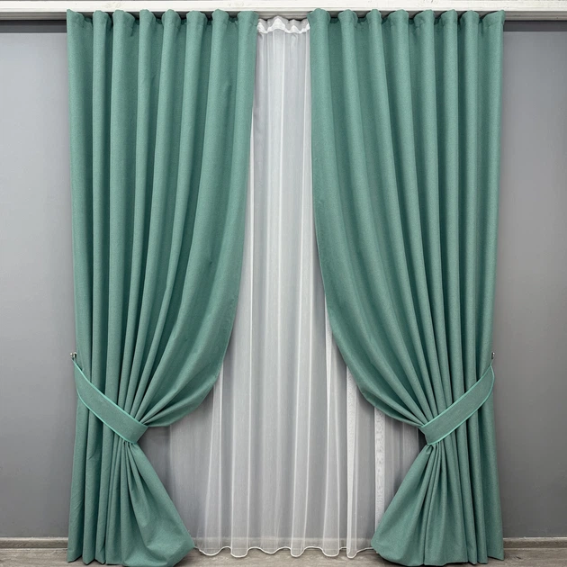 Комплект штор VR-Textil 100 блекаут ASHEN NIGHT 150х270 2шт і Тюль 400х270 1849ш-1153т бірюзовий з білим 71-090/3