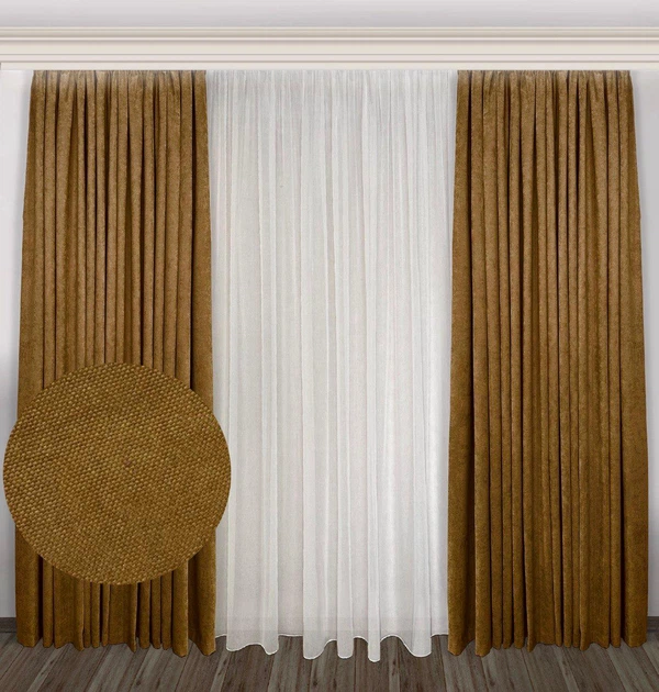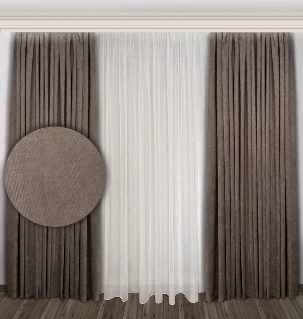 Комплект штор EkoShtory мікровелюр 200х240 см, коричнево-бежевих №2521 2шт