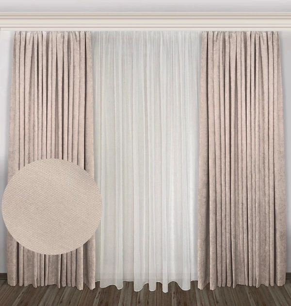 Комплект штор EkoShtory мікровелюр 200х220 см, світло-коричневий №2216 2шт