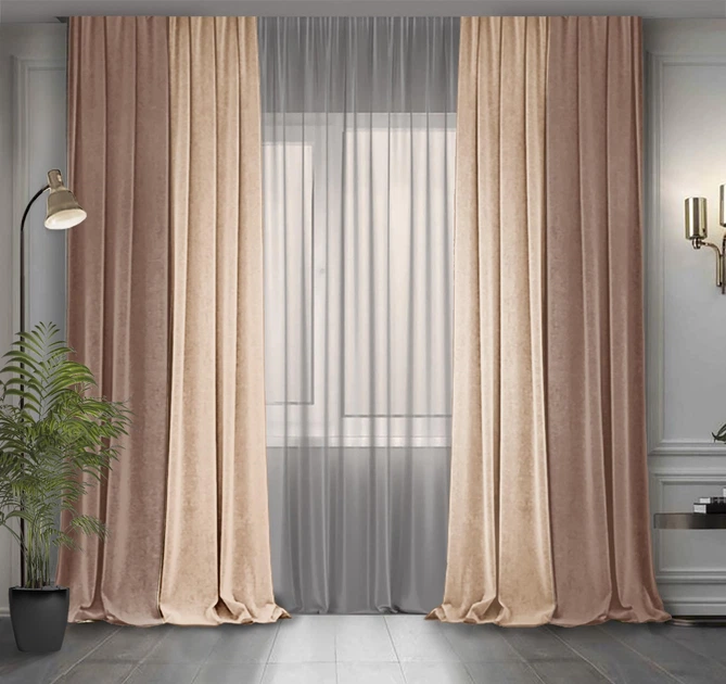 Комплект двоколірних штор Декор-Ін Мікровелюр 300x290 2 шт Бежеві з Капучино (ROZ6400065377)