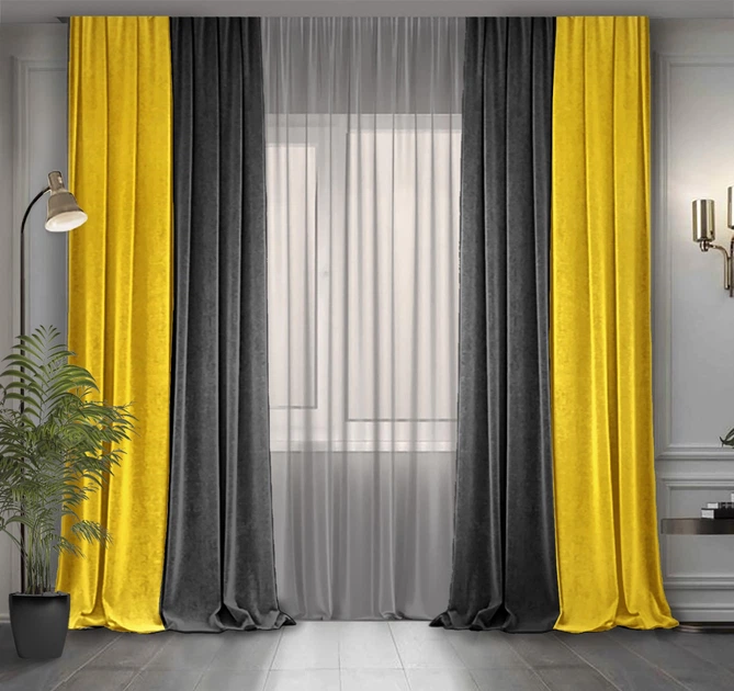 Комплект двоколірних штор Декор-Ін Мікровелюр 300x260 2 шт Жовтий з Темно-сірим (ROZ6400066380)
