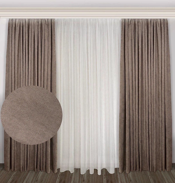 Комплект штор EkoShtory мікровелюр 200х270 см, блідо-коричневих №2710 2шт