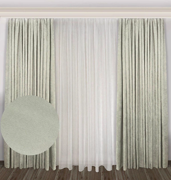 Комплект штор EkoShtory мікровелюр 200х260 cм, м'ятних №2248 2шт