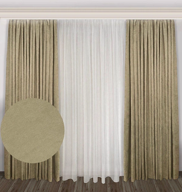 Комплект штор EkoShtory мікровелюр 200х270 см, крем-брюле №2096 2шт