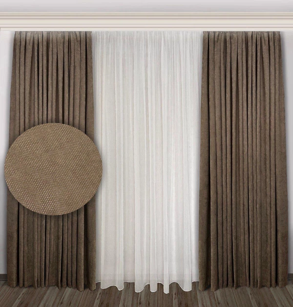 Комплект штор EkoShtory мікровелюр 200х275 см, капучино №2200 2шт