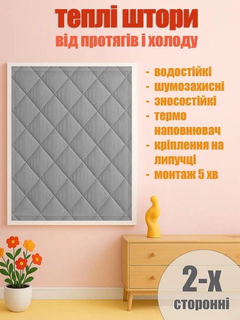 Штора теплозберігаюча (на липучках) Сіра - H 250*125 см