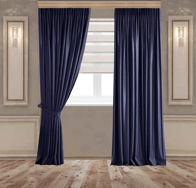 Комплект штор Декор-Ин Оксамитові 200х265 см 2 шт Темно-сині (Vi101737)