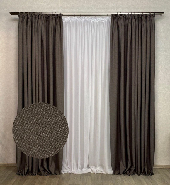 Комплект штор Льон-Рогожка, 200x250 колір світло-коричневий №92 , 2шт