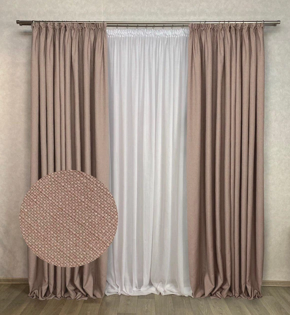 Комплект штор Льон-Рогожка, 200x220 колір тепло-бежевий №67 , 2шт