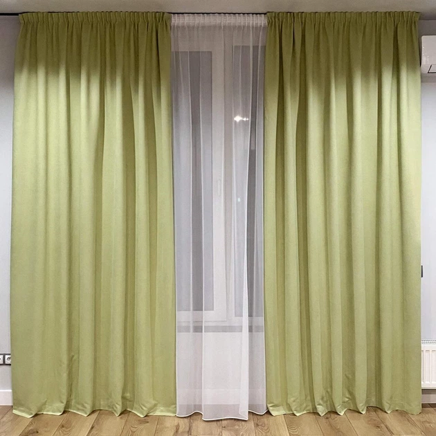 Комплект штори на тасьмі 2 шт 300х250 мікровелюр Світло-зелений, тюль вуаль 550х250 Білий