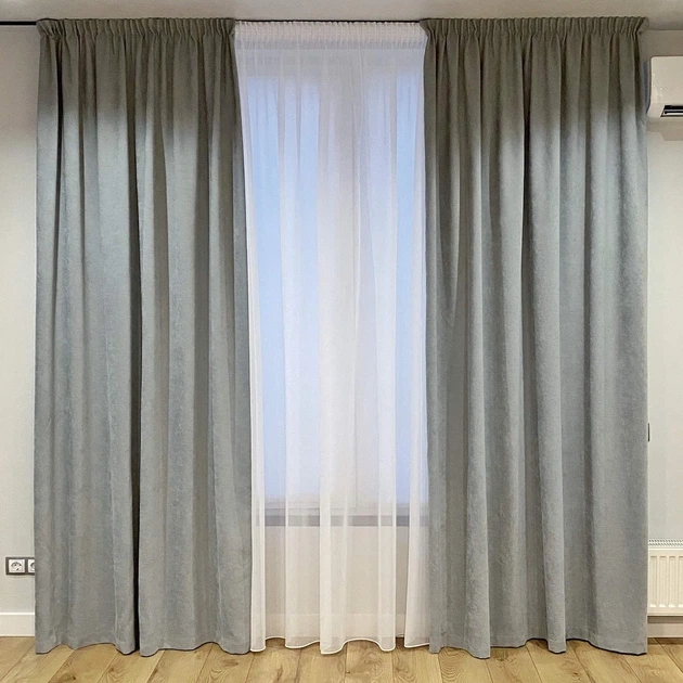 Комплект штори на тасьмі 2 шт 280х250 мікровелюр Сіро-блакитний тюль вуаль 500х250 Білий