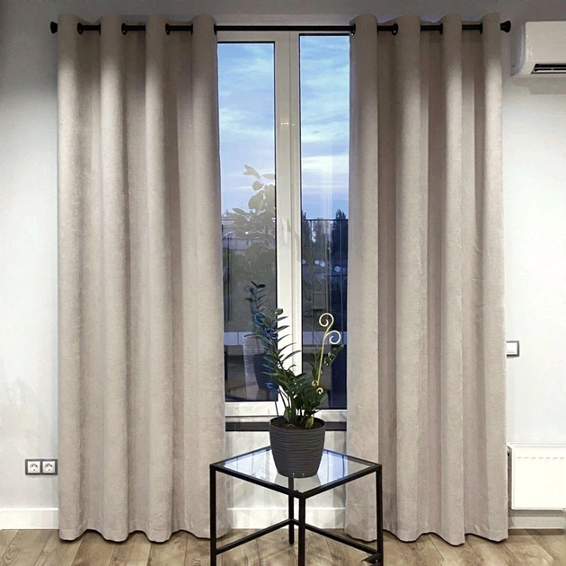 Комплект штори на сірих люверсах 2 шт 295х250 см мікровелюр Беж-капучино