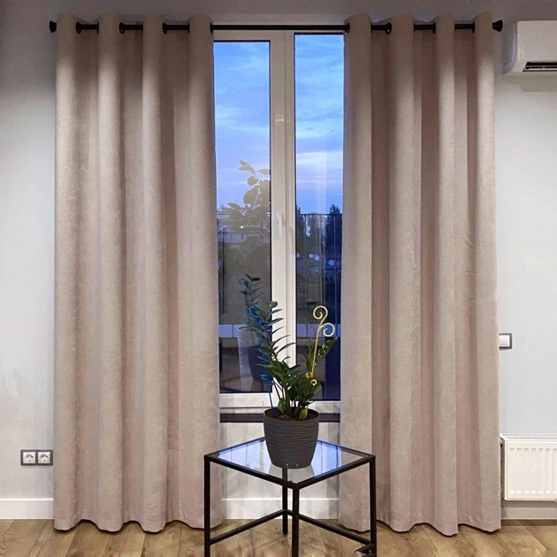 Комплект штори на чорних люверсах 2 шт 295х250 см мікровелюр Беж-капучино