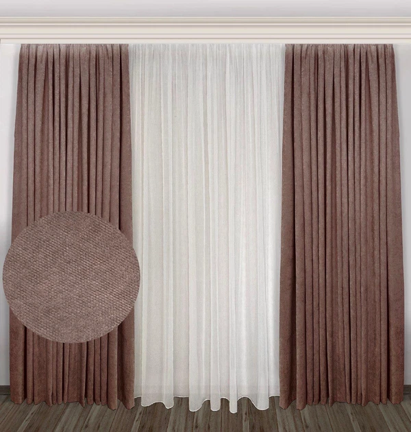 Комплект штор EkoShtory мікровелюр 300х235 см, молочний шоколад №2193 2шт