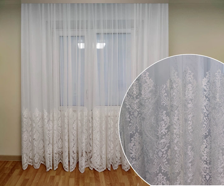 Тюль з купоном Декор-Ін Королівська лілія Білий з вишивкою 600х275 (Vi200506)