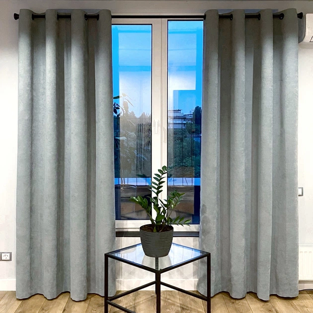 Комплект штори на сірих люверсах 2 шт 385х250 см мікровелюр Сіро-блакитний