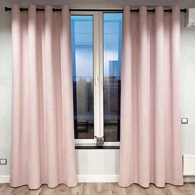Комплект штори на чорних люверсах 2 шт 385х250 см мікровелюр Рожево-пудровий