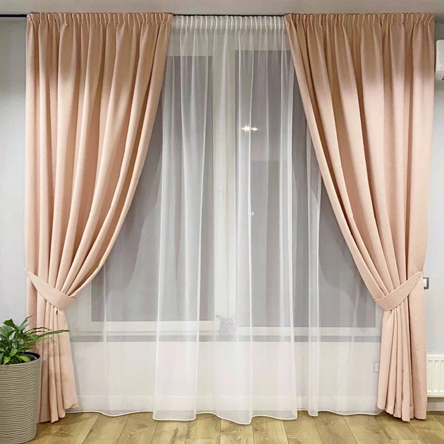 Комплект штори на тасьмі 2 шт з підхватами 280х250 см мікровел Рожево-пудровий вуаль 600 см Білий