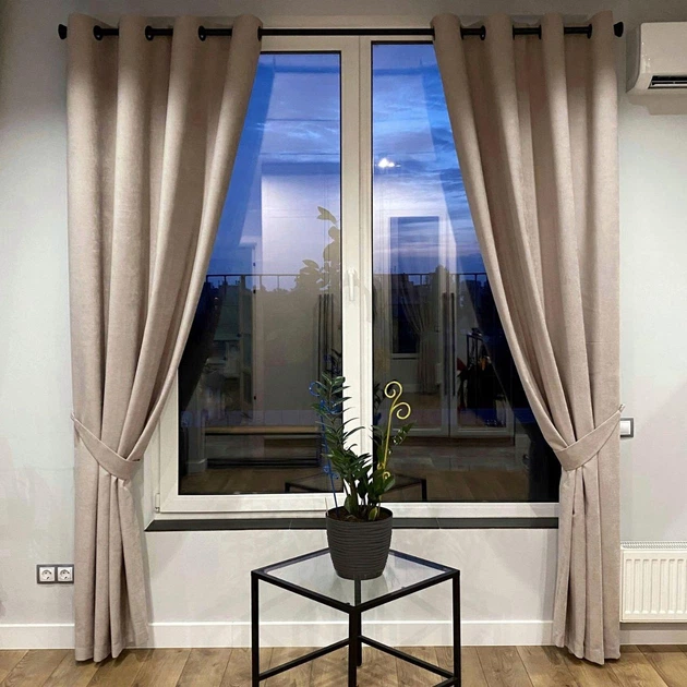 Комплект штори на чорних люверсах 2 шт з підхватами 325х250 см мікровелюр Беж-капучино