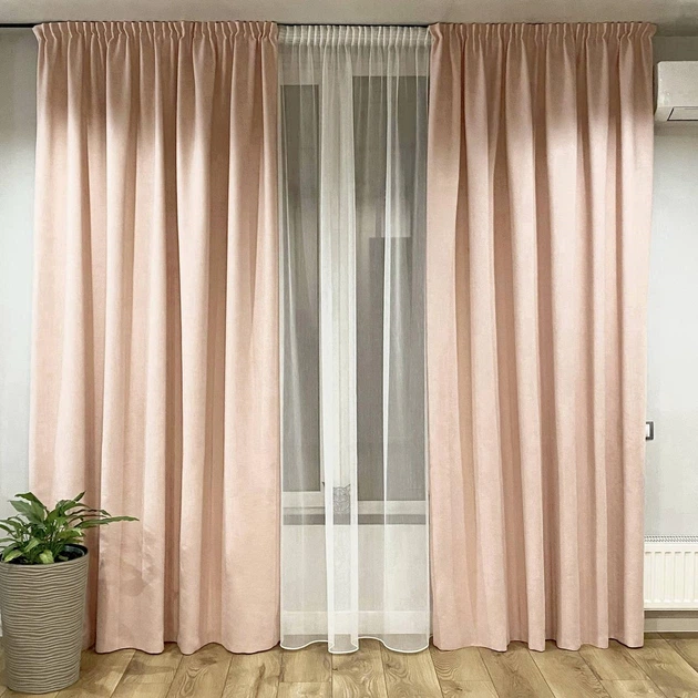 Комплект штори 2 шт 280х250 см мікровелюр Рожево-пудровий тюль бамбук 750 см Тепло-білий