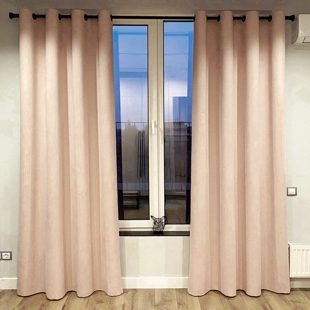Комплект штори на чорних люверсах 2 шт 355х250 см мікровелюр Рожево-пудровий