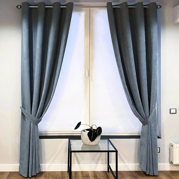 Комплект штори на сірих люверсах 2 шт з підхватами 355х250 см мікровелюр Сіро-синій