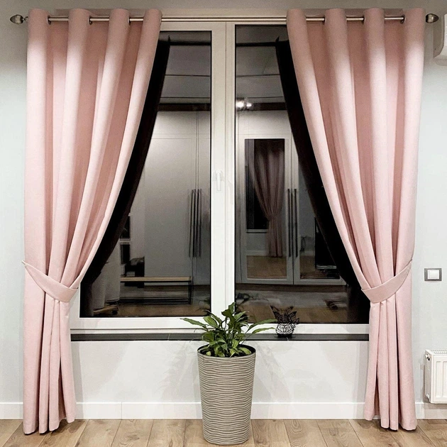 Комплект штори на сірих люверсах 2 шт з підхватами 355х250 см мікровелюр Рожево-пудровий