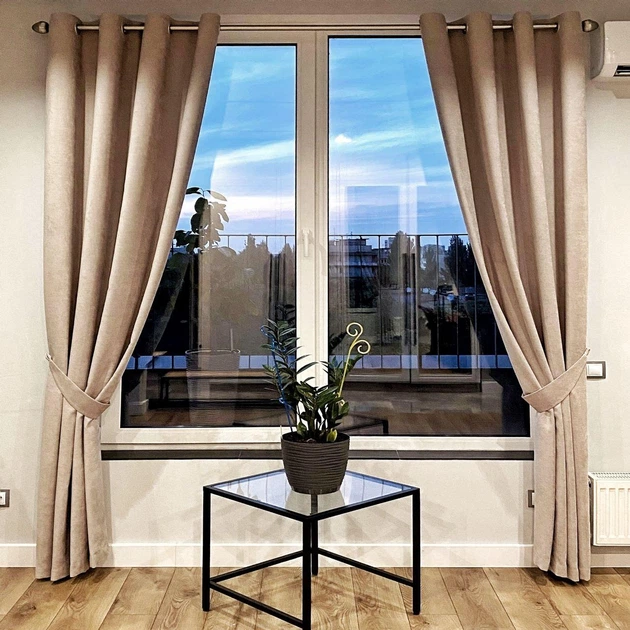 Комплект штори на чорних люверсах 2 шт з підхватами 385х250 см мікровелюр Беж-капучино