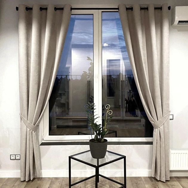 Комплект штори на чорних люверсах 2 шт з підхватами 385х250 см мікровелюр Сіро-бежевий