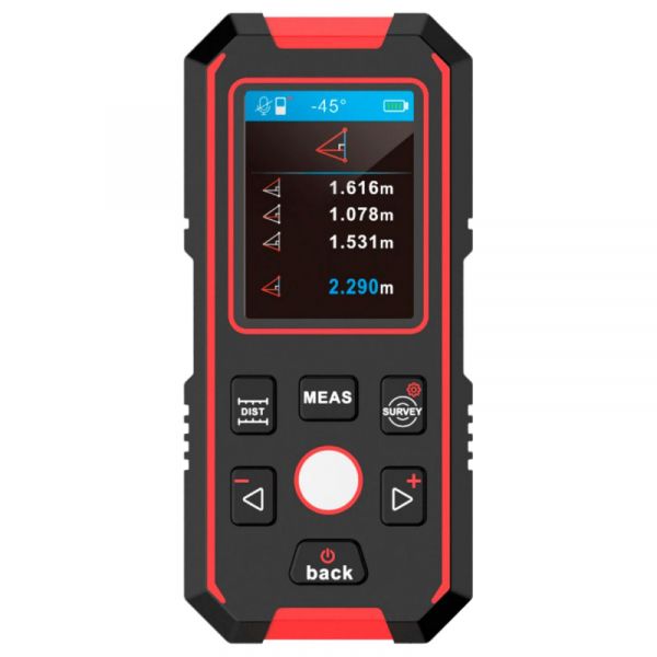 Особливості: Високоточний інструмент для вимірювання кутів. Кутомір став незамінним і важливим вимірювальним інструментом в області мостобудування, залізничного будівництва, будівництва, оздоблення, промислової автоматизації, інтелектуальних платформ, механічної обробки і так далі. Двонаправлене лазерне сканування. Яскрава лазерна точка (клас 2) вимірювача буде легко