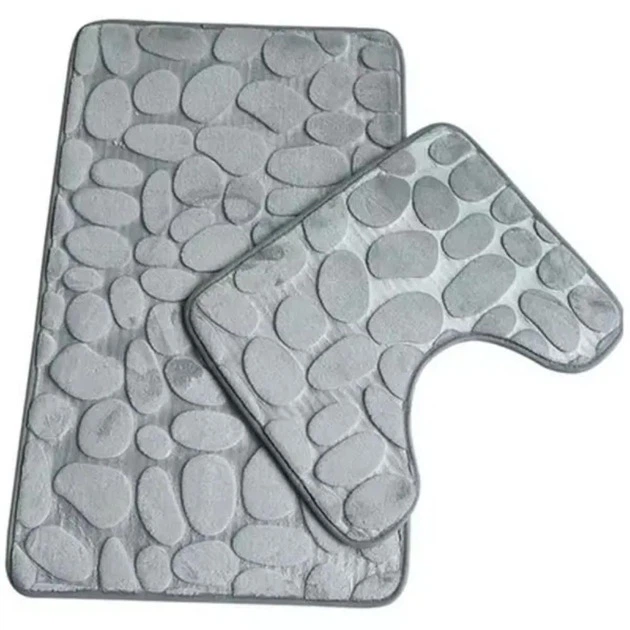 Набір 3-D текстурних килимків для ванної та туалетної кімнати, 2 шт, сірий (MA432)
