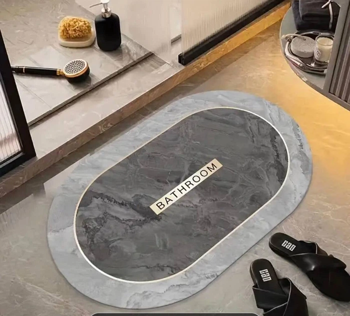 Килимок діатомітовий суперпоглинаючий Hoimc 89х59 см для ванної коридору кухні кімнати, овальний сірий (R051237)